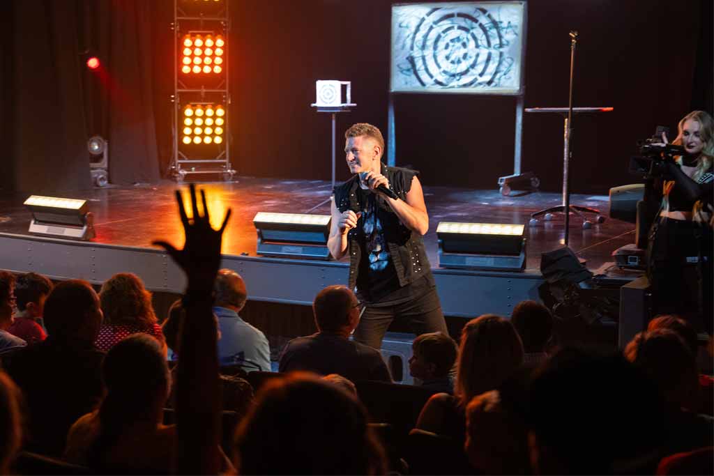 Experience the impossible as a lady actually floats ten feet in the air during magic’s most epic levitation routine. Audience members are invited to participate throughout the performance. The show comes to a thrilling end as a real HELICOPTER appears on stage only a few feet away. You won’t believe your eyes!